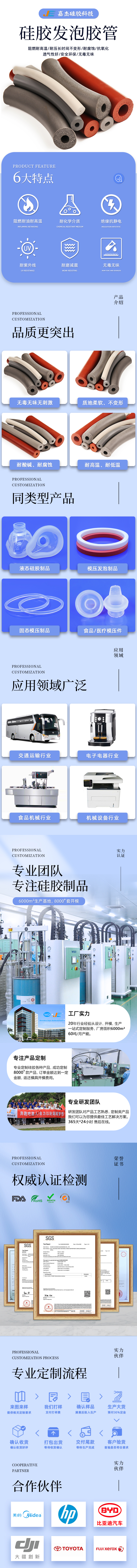 廣泛地應用于橡膠制品/燈飾/醫療設備/食品包裝,建筑、汽車、航空、通訊、機械設備、化工、家庭日常生活等領域。 由于硅膠發泡管應用在許多不同的產品上,所要求的規格也各不同,深圳市嘉杰橡塑有限公司可根據您的需求 定制!(推薦閱讀:如何識別真假硅膠制品類產品) ![]()